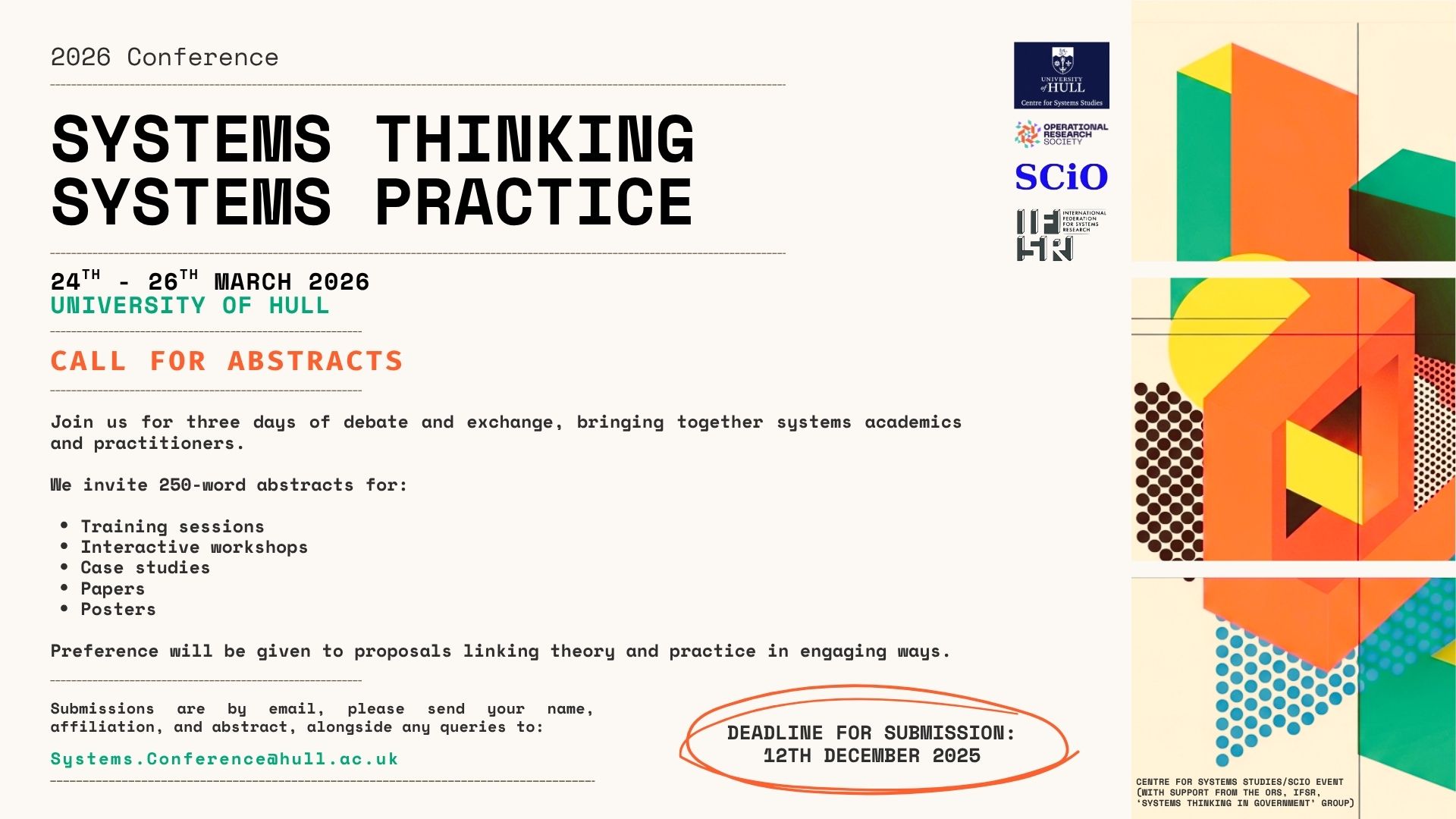 Call for Abstracts / Save The Date, Systems Thinking, Systems Practice. 24th – 26th March 2026, University of Hull